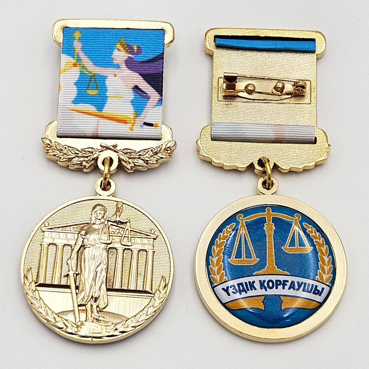 Медальдің муар лентасында көк фонда алтын таразы мен Фемида бейнесі бар. Бұл көрініс құқық қорғаушылардың әділ шешім қабылдауға деген адалдығын білдіреді. Мұндай сыйлық кәсіби мереке, туған күн немесе марапаттау рәсімінде тамаша әсер қалдырады. Егер сіз ойлансаңыз, адвокатқа не сыйлауға болады немесе адвокатқа алғыс ретінде не сыйлауға болады, бұл медаль – ең лайықты таңдау.