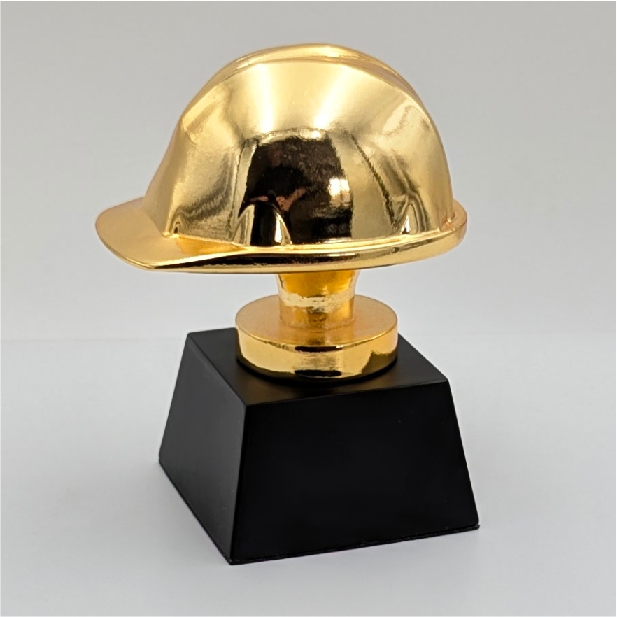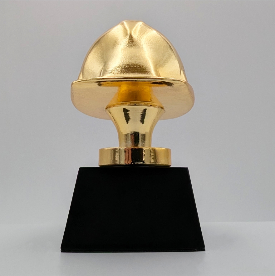 Каждая статуэтка строительная каска изготавливается с соблюдением всех этапов производства. Сначала подставка из МДФ тщательно шлифуется и закрашивается в черный матовый цвет, создавая аккуратную основу. По желанию клиента можно заказать именную табличку. Табличка металлическая золотая, нанесение выполняется методом сублимационной печати, при этом табличка в стоимость статуэтки не входит. Далее создается пресс-форма, обеспечивающая точную передачу деталей. После этого выполняется литьё пластиковой фигуры с высокой степенью детализации. Затем наносится прочное гальваническое покрытие, придающее изделию премиальный внешний вид и долговечность. Завершающим этапом является упаковка. Такой сувенир для строительной компании Казахстан отлично подходит для корпоративных награждений и профессиональных праздников. Особенно востребован премиальный сувенир строителю Алматы, когда важно подчеркнуть статус события. Также возможно изготовление строительные каски с логотипом для корпоративных клиентов.