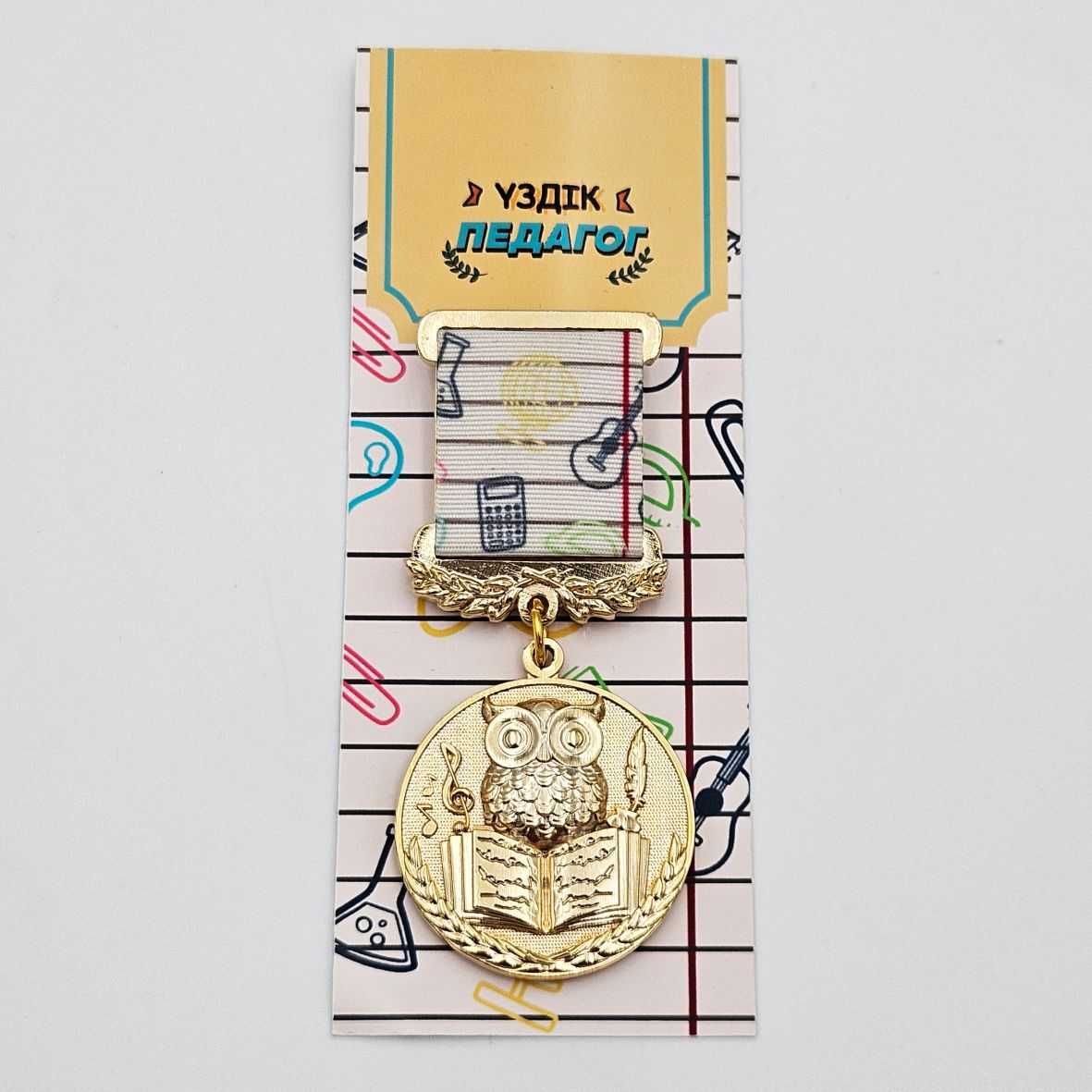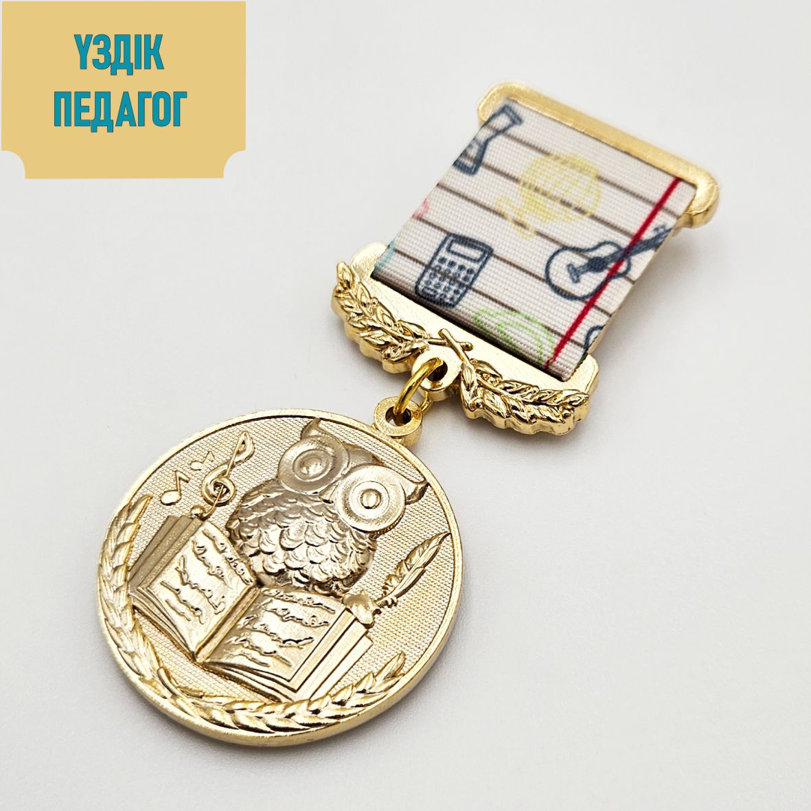 💛 Үздік ұстаз медаль – нағыз құрметтің белгісі. «Үздік педагог медаль» – бұл білім беру саласындағы үздік ұстаздарға арналған марапат. Медальдің алдыңғы бетінде ашық кітап пен үкі бейнеленген, ол — даналық пен білімнің мәңгілік символы. Қасында қауырсын мен ноталар — рухани даму мен шығармашылықтың белгісі. Ал артқы бетінде эпоксидті қабықпен қапталған «Үздік педагог» жазуы бар, түстері мен композициясы ұстаздың еңбегіне деген алғыс пен құрметті айқын көрсетеді.